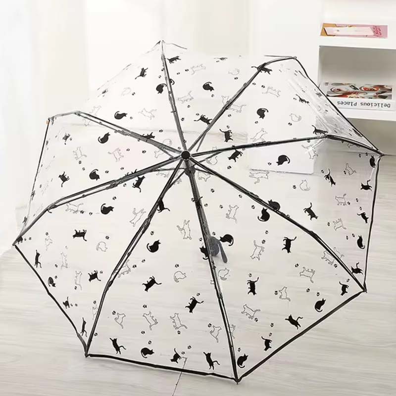 Automatik-Regenschirm transparent mit Katzen
