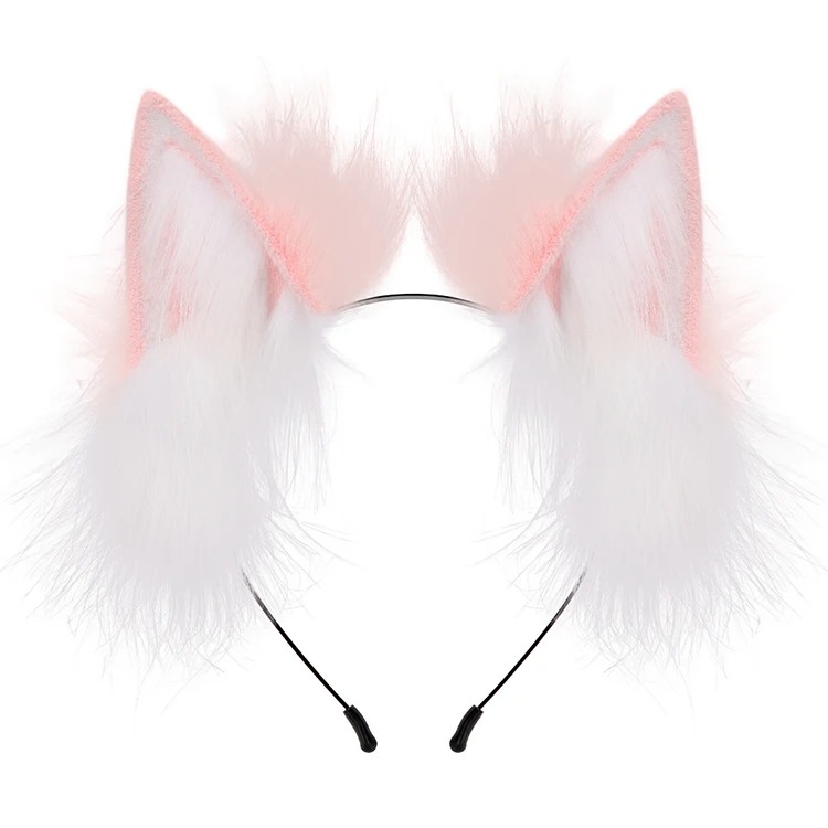 Haarreifen Fell-Fuchsohren oder große Katzenohren mit Weiß