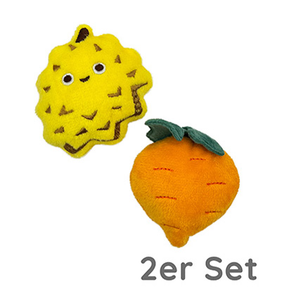 niedliches Katzenspielzeug mit Katzenminze in verschiedenen Obst/Gemüseversionen