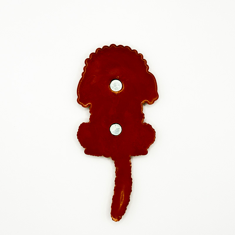 Magnethaken mit Hundedesigns aus Silikon mit zwei Magnetpunkten auf der Rückseite. Der Schweif ist verbiegbar und so als Haken für Kleinigkeiten wie Schlüssel, Haarringe, Ohrringe, Schmuck, Uhren, aber auch für Brillen verwendbar.