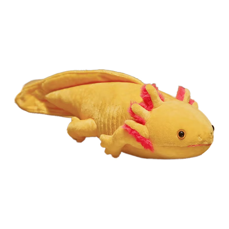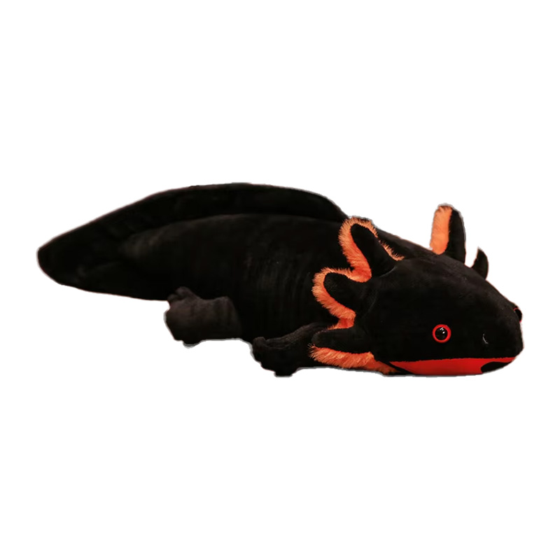Plüschtier Axalotl (ca. 35cm) lang in blau, rosa, gelb, grau oder schwarz mit rotorangem Bacht mit schwarzen Flecken